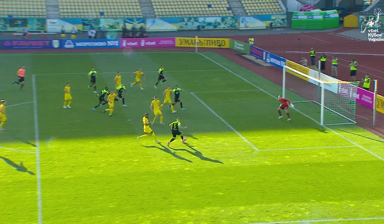 А потім господарі забили. Щоправда, гол не зарахували. Кравченко отримав закидання від Грицука й прострілив вздовж воріт, а Грицук при замиканні влучив собі в руку – та ще й в офсайд потрапив. Добивання від Назаренка вже не мало сенсу.
