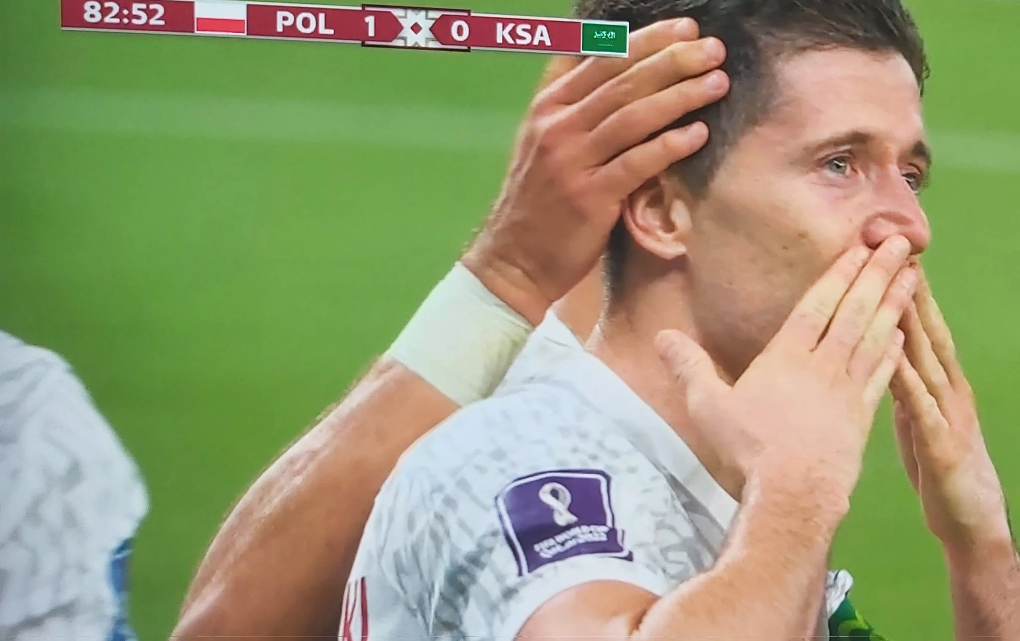 Який же блискучий цей Аль-Оваїс. Уже не вперше а-ля Нойєр своєчасно вибігає далеко з воріт, позбавляючи Лєвандовскі шансу вийти сам на сам. Малькі змушує Ренара і численних фанатів "соколів" хапатися за голову. Стрімкий удар був, поруч зі стійкою. Він все-таки це робить. Лєвандовскі скористався технічним огріхом Аль-Малькі (міг стати героєм, а в підсумку поховав своїх), який відпустив м'яч перед своїм штрафним, і прошив голкіпера. Перший гол 34-річного ветерана на чемпіонатах світу! Неймовірна історія. Лєвандовскі впав на землю і відчуває шалене полегшення. Пустив навіть скупу чоловічу сльозу Роберт.