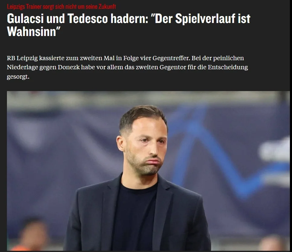 Хоча його команда пережила чергове фіаско, тренер не переживає за своє майбутнє. Гулачі після матчу знову дав зрозуміти, що гравці все ще за Тедеско: "Тренер нічого не може вдіяти з пропущеними голами". З огляду на майбутні виклики, виглядає сумнівним, що Лейпциг змінить тенденцію у найближчих іграх. У Бундеслізі дортмундська Боруссія в суботу, а 14 вересня в знову в Лізі чемпіонів – мадридський Реал.