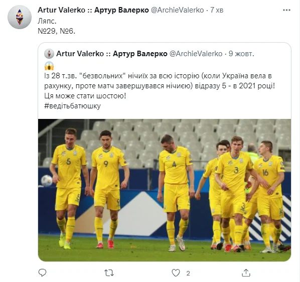 Архіваріус Артур Валерко з тривогою відзначає нашу шосту "безвольну" нічию за рік. Коли вели в рахунку, але втрачали перемогу.