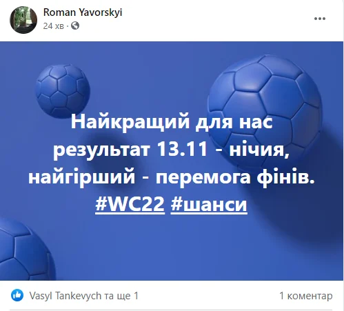 Журналіст 24 каналу Роман Яворський вже прорахував варіанти на фініш відбору, коли Боснія прийматиме Фінляндію.