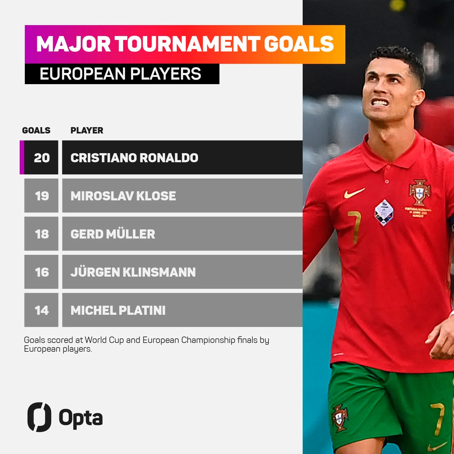 Крім того, португальцю вдалося перевершити Міро Клозе. Тепер вже Роналду є найбільш результативним європейцем на чемпіонатах Європи та світу (20 голів).
