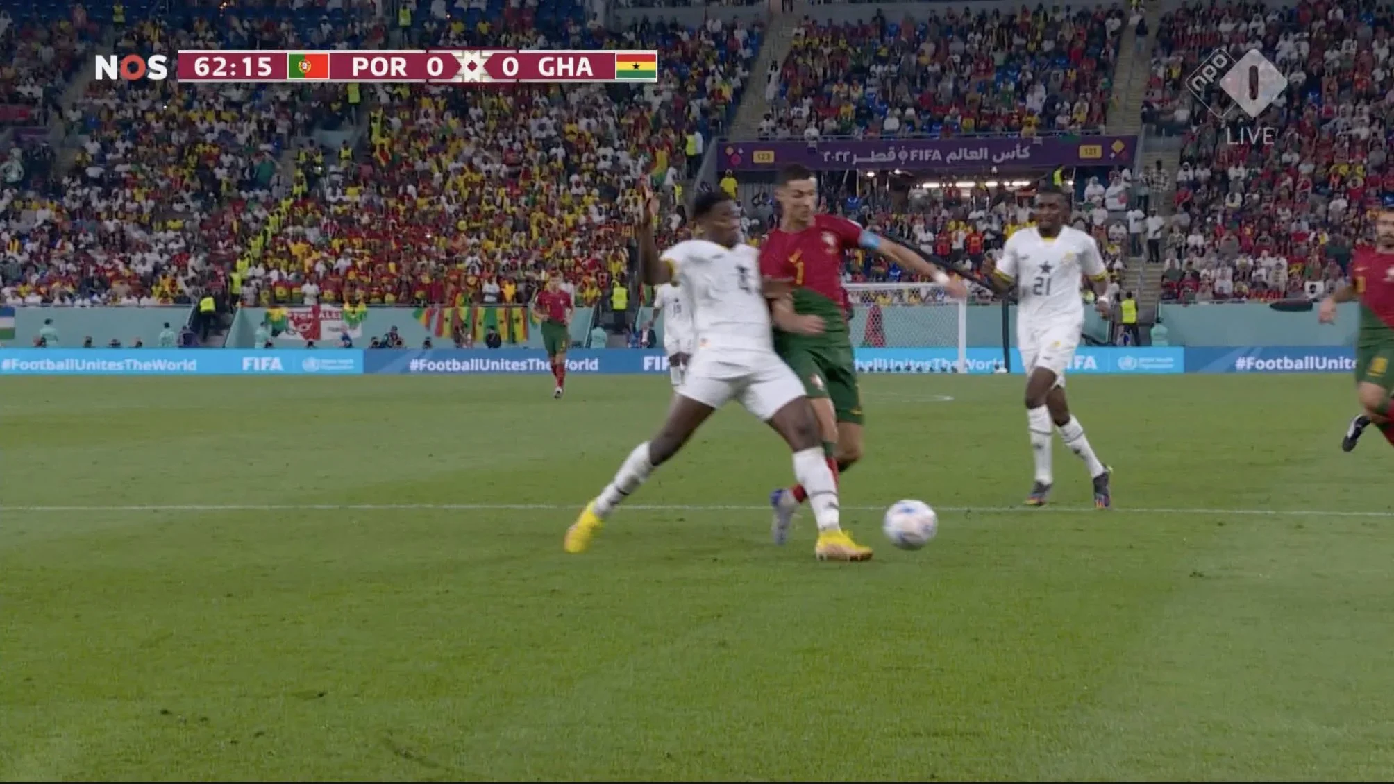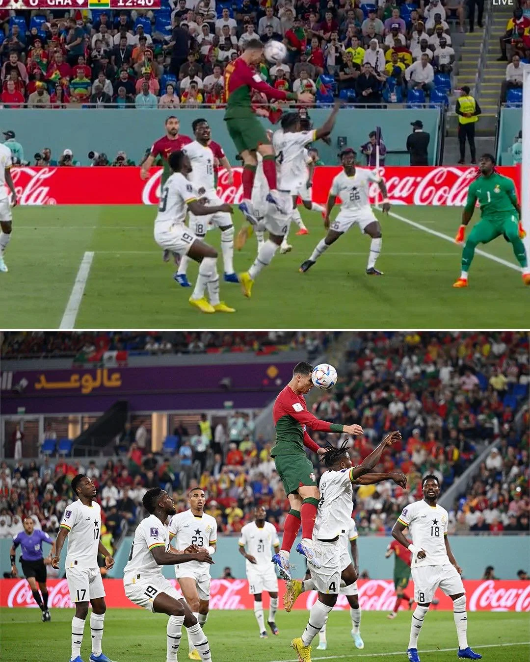 Африканці виглядали дуже безпорадно і тьмяно в атаці. За 1 тайм у них лише 2 кутові без загрози. Не вдавалося вибігати в контрнаступ. Ситуацію погіршувало те, наскільки Гана програвала всю боротьбу, особливо у повітрі. А ось на початку другого тайму "чорні зірки" почали огризатися. Хоча динаміка контратак була настільки низькою, ніби хтось поставив відтворювати швидкість трансляції на 0,5. Півзахисник Аякса Кудус приклався з-за меж штрафного – поруч зі стійкою. Кошта ніби й контролював політ м'яча, але таке може й залетіти. І тут найкращий суддя американської МЛС Ісмаїл Ельфат призначає доволі сумнівний пенальті. Роналду підставився у боротьбі з центрбеком Саутгемптона Салісу. Суддя радісно вказав на позначку, а VAR не втручався. Воротар майже витягнув, однак Кріштіану пробив занадто класно.