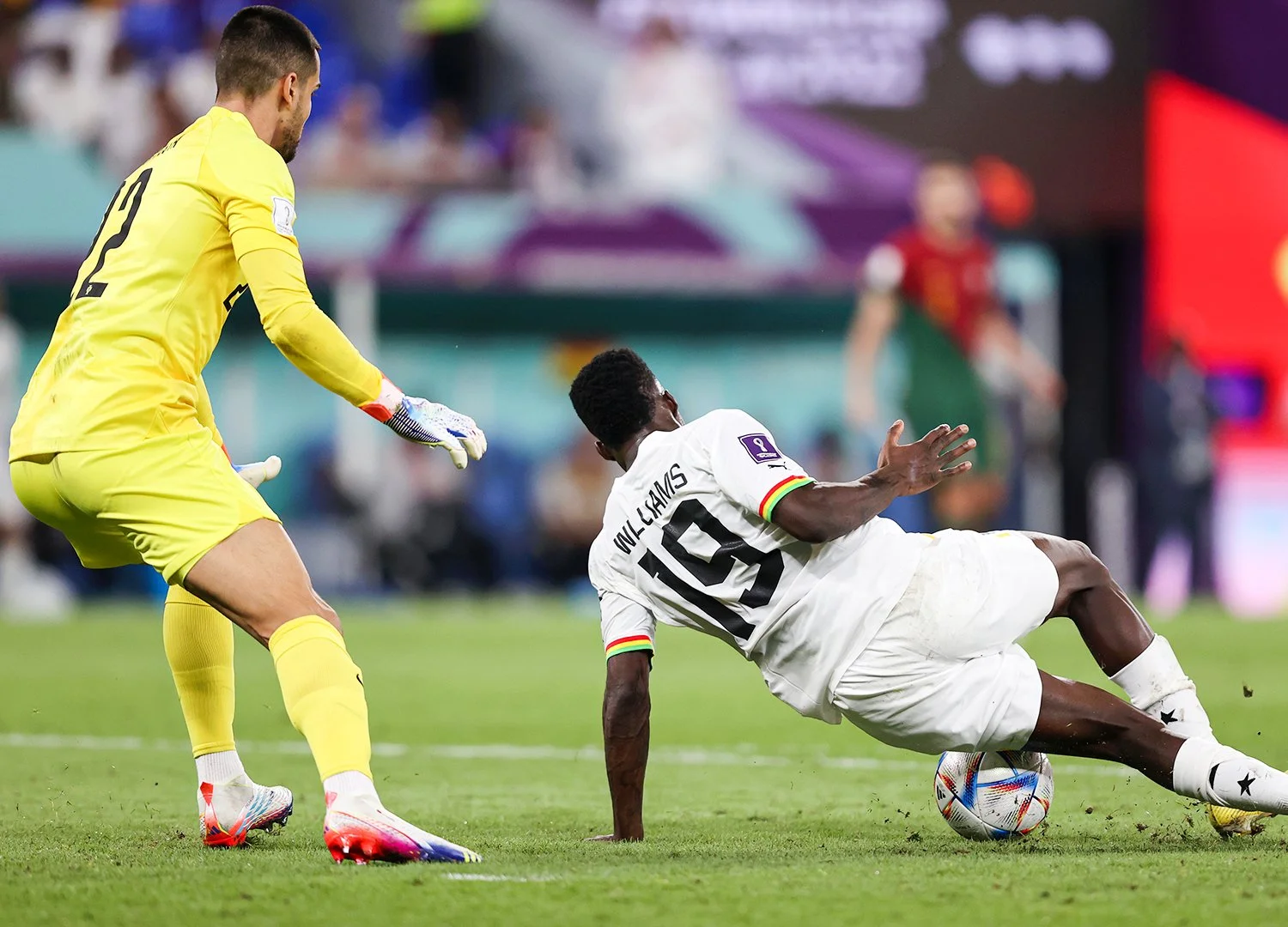 Сантуш зняв з поля Роналду, Фелікса та Бернарду Сілву, виставивши Рамуша та двох глибших півзахисників. Гана пішла ва-банк і забила ще до того, як суддя компенсував 9 хвилин. Букарі, який замінив Кудуса, також розстріляв Кошту з меж штрафного. Цього разу головою. Півзахисник Црвени Звезди обурив Роналду на лаві запасних святкуванням у стилі португальця. На останніх секундах Кошта ледь не привіз безглуздий гол. Діогу викинув м'яч собі на хід, щоб потягнути час. Іньякі Вільямс вискочив з-за спини і обікрав, однак удару дещо завадило несподіване падіння форварда Атлетіка. "Чорні зірки" фактично самі дарують перемогу команді Сантуша. Міна шокованого цим епізодом Роналду безцінна. Португалія набирає таки 3 очки та очолює групу H. Гана залишається на останньому місці. В Уругваю та Південної Кореї по балу.