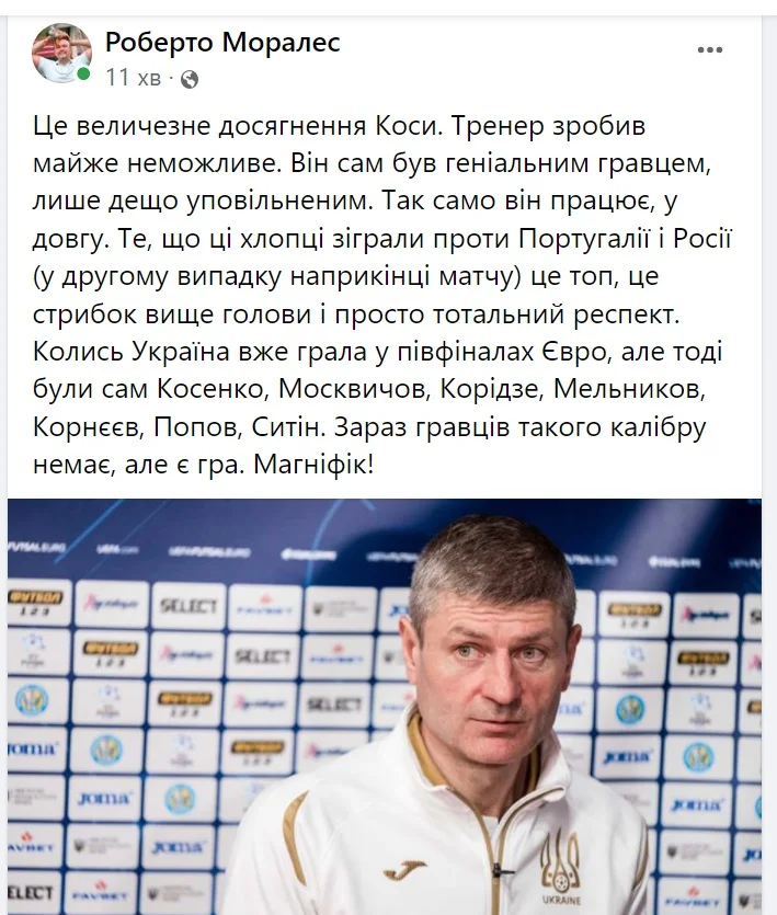 Футбольний коментатор та журналіст Роберто Моралес хвалить головного тренера. Олександр Косенко був чудовим гравцем і поступово рухається до того ж у статусі тренера.