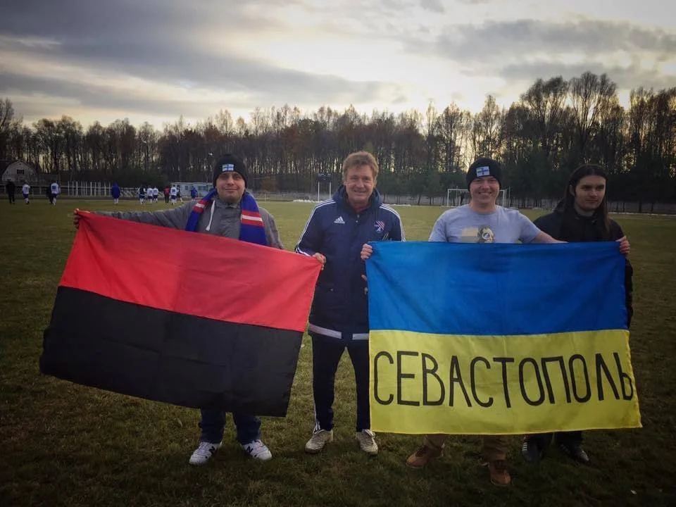 Цікаво, що сам Шевченко має дуже невизначену позицію щодо війни росіян проти України. Зокрема, фахівець раніше позував з прапорами УПА та України з написом Севастополь.