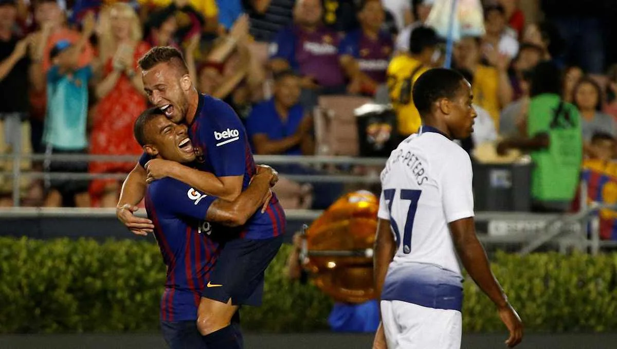 Дебют Артура за Барсу не міг бути кращим. Він разом із ще одним новачком – Клеманом Лангле – опинився в старті, а Малком почав гру з лави для запасних. Бразилець, який грав із "четвіркою" на спині (в офіційних матчах під цим номером виступає безумовний гравець основи Іван Ракітіч – Футбол 24), зайняв позицію у центрі поля, ближче до правого флангу. Перший тайм проти Тоттенхема у виконанні 21-річного хавбека був неймовірним. Він показав свій високий рівень, а вишенькою на торті став забитий гол. На 29-й хвилині поєдинку Артур отримав передачу від Рафіньї і віртуозним ударом правою надіслав м'яч у лівий верхній кут воріт Гаццаніги.