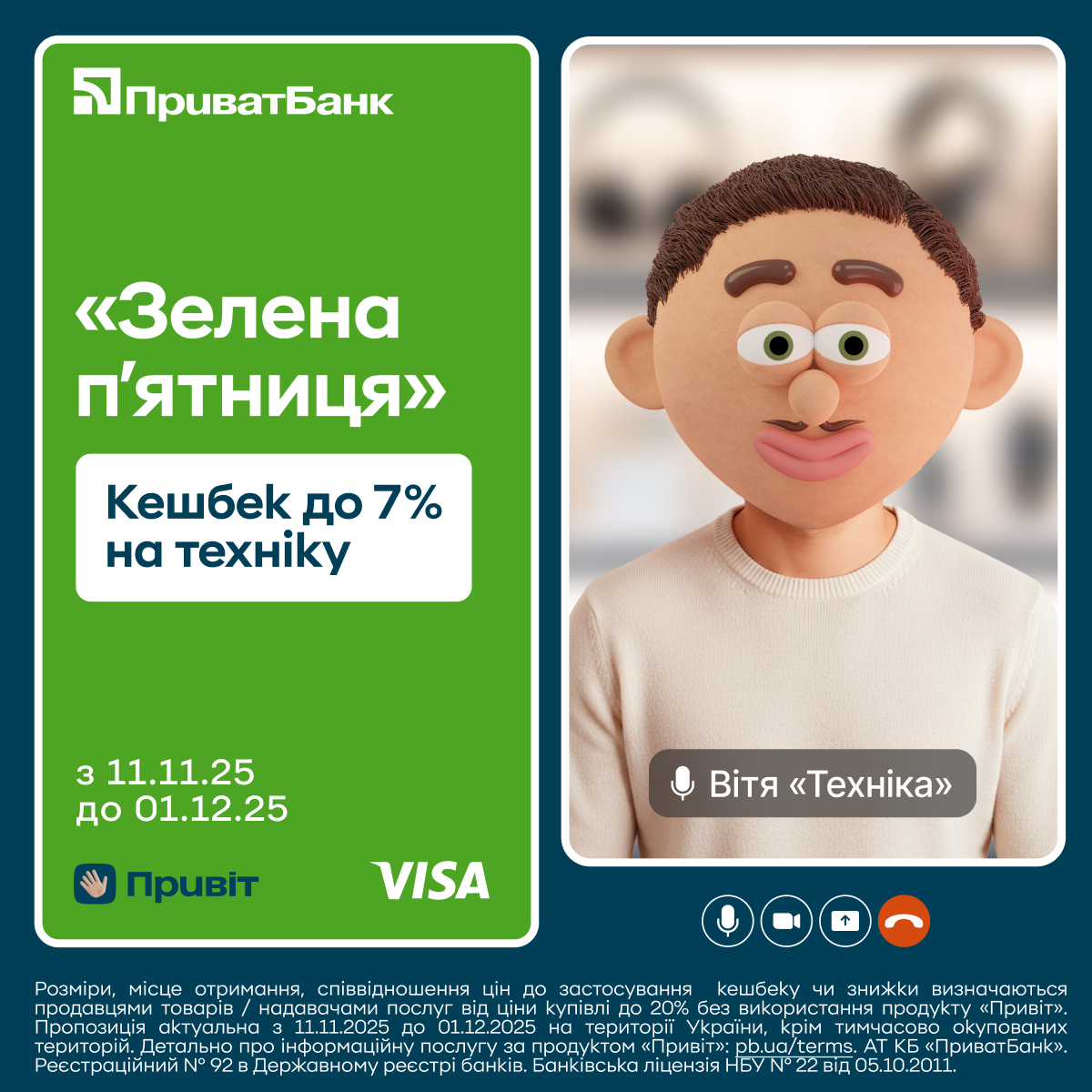 ПриватБанк та Visa прокачують картки клієнтів на "Зелену п'ятницю": кешбек до 20% та вигідна "Оплата частинами"