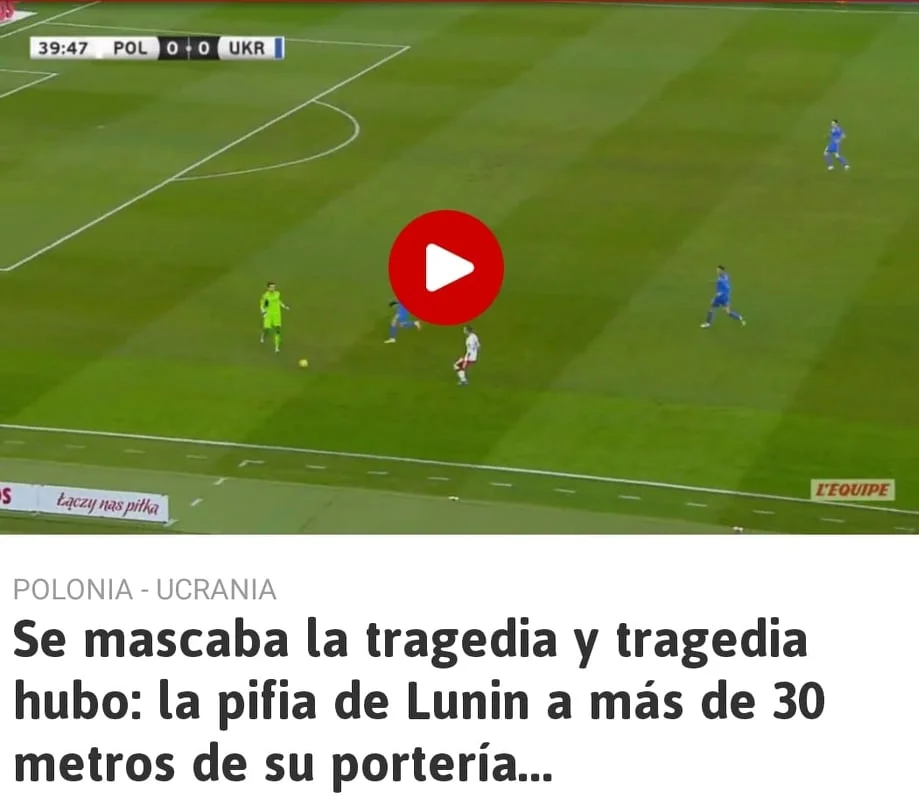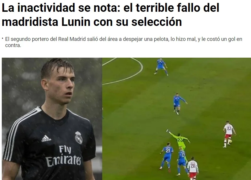 "Про цю трагедію говорили неохоче крізь зуби, і трагедія сталася: фейл Луніна за 30 метрів від власних воріт, – пише видання AS, яке видало той самий віщий матеріал за кілька годин до матчу. – Голкіпер Реала намагався перервати швидку атаку поляків, але заплутався у власних ногах", – зазначає рупор мадридської переси.