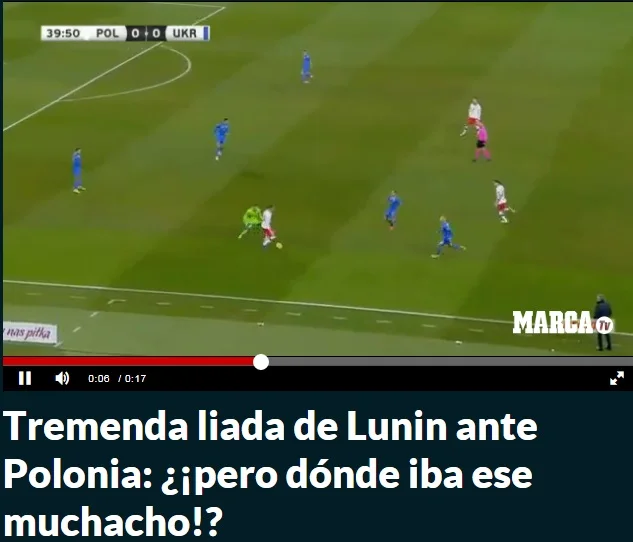 Авторитетна Marca також розважала читачів кумедним відео: "Неймовірна помилка Луніна проти Польщі: куди ж вибіг цей хлопчина?!".