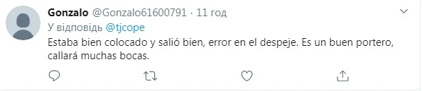 "Він добре вийшов з воріт, єдина помилка – кікс. Це хороший воротар, який позакриває багато ротів".