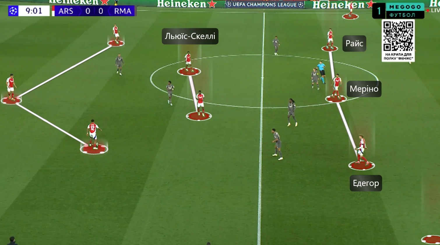 Арсенал: Рая – Тімбер, Саліба, Ківіор, Льюїс-Скеллі – Едегор, Парті, Райс – Сака, Меріно, Мартінеллі