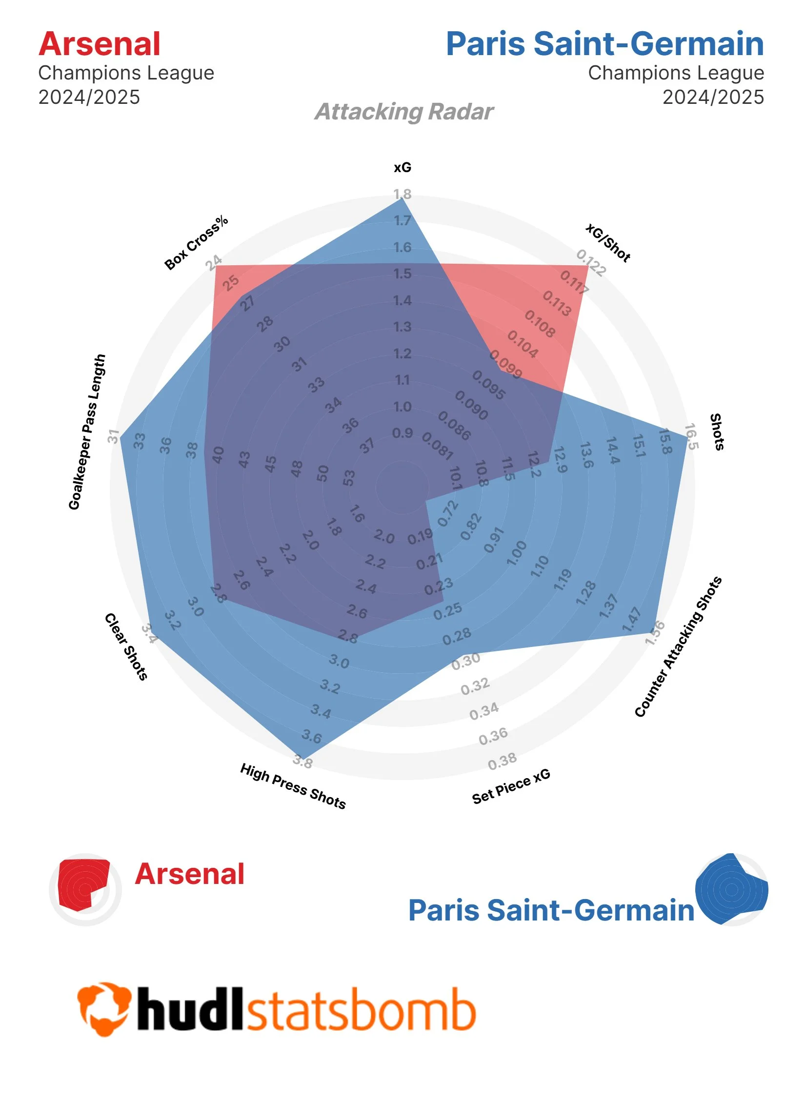 Теоретично фаворитом є ПСЖ. Французи грають вдома, у них є перевага в один гол, їхня кадрова ситуація – ідеальна. До того ж, вони майже однаково сильні у всіх режимах гри з м'ячем. Команда не слабша за Арсенал при атаках на просторі, однозначно потужніша в позиційній атаці й дуже стійка під тиском.