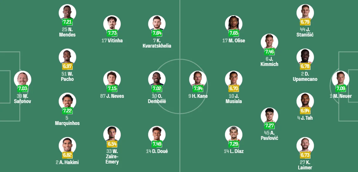 Трикутник ПСЖ в атаці насправді нічим не поступається мюнхенцям: Усман Дембеле, Хвіча Кварацхелія та Дезіре Дуе в сезоні 2024/25 вже довели, що можуть поставити на коліна будь-яку команду Європи. А Дембеле і взагалі може піти на здобуття другого "Золотого м'яча" поспіль, особливо якщо допоможе збірній Франції здобути ще один титул чемпіона світу.
