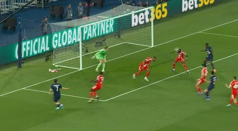 Арбітр помітив рикошет, тож ПСЖ заробив кутовий. Він став фатальним для гостей. Маленький Невеш відклеївся від Мусіали й замкнув подачу Дембеле, виконавши ідеальний удар головою. Сильно й точно під дальню штангу. 2:1!