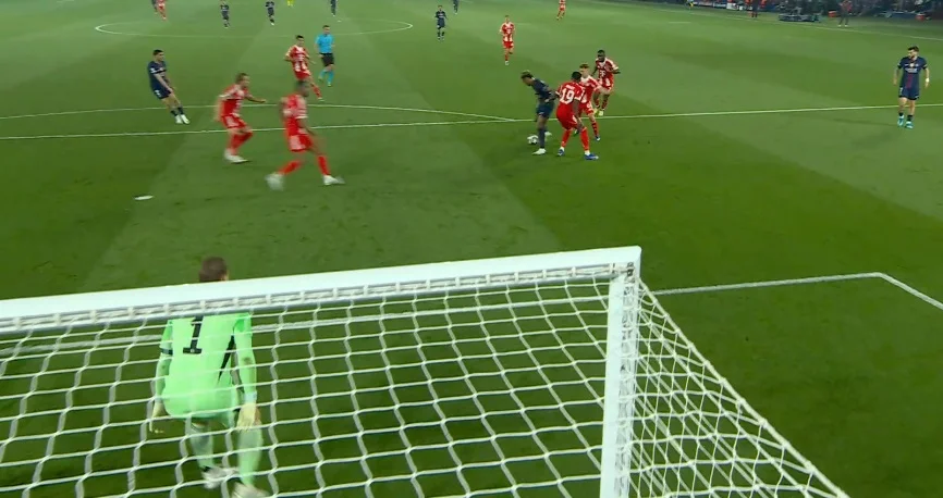 А потім гра різко змінилася. Затяжні атаки Баварії все частіше стали нариватись на контрвипади, які до болю нагадували рейди Вінісіуса й Мбаппе. Найбільше виділялися Дуе, Дембеле й Кварацхелія, які ще до пропущеного гола організували класну атаку з вриванням Хвічі на лівий край штрафного.
