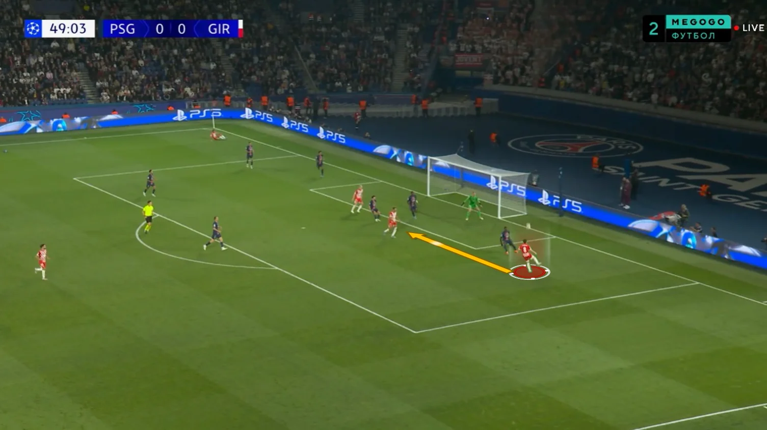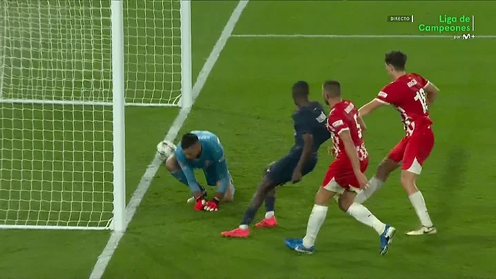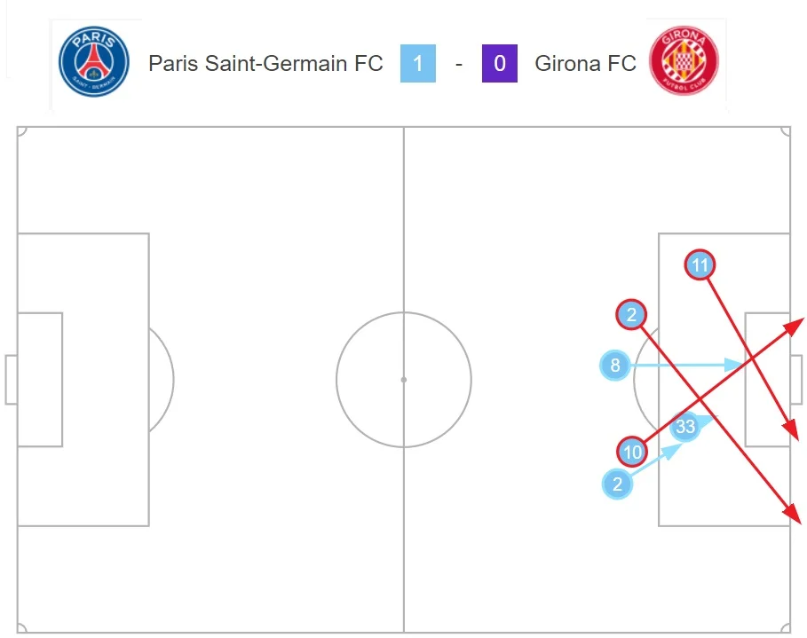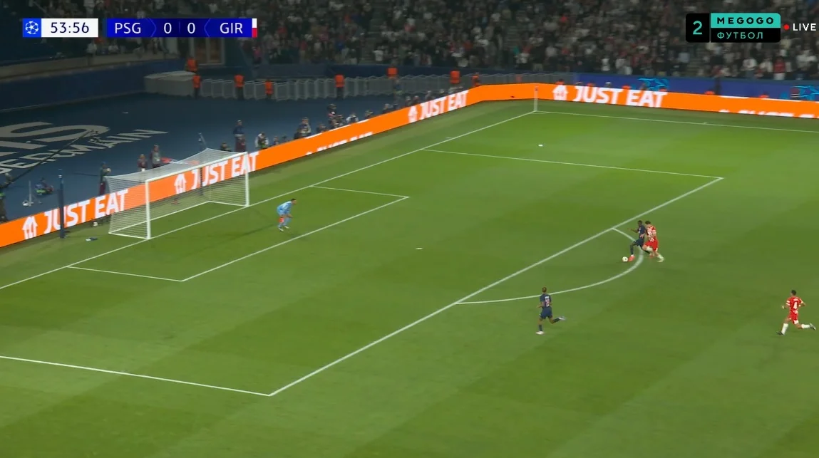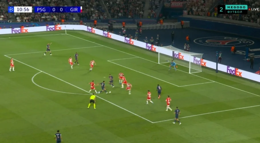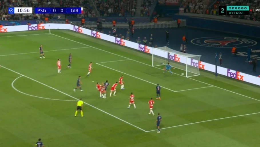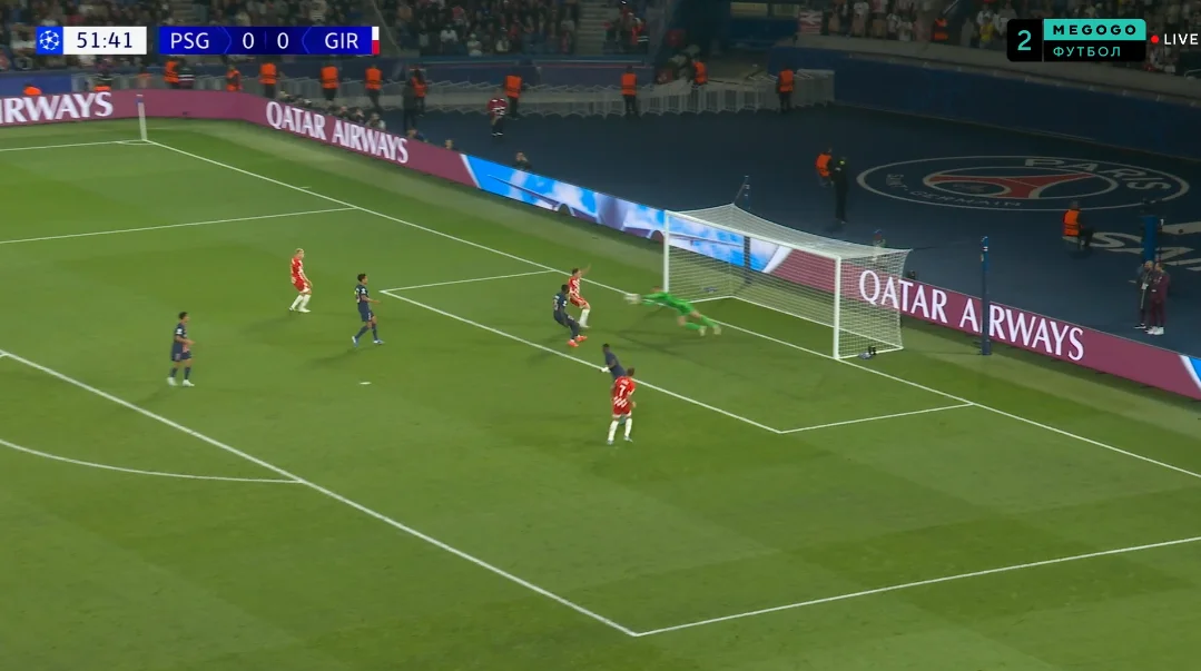 Але і цього могло вистачити для взяття воріт. На самому початку зустрічі ПСЖ оточив карний майданчик Жирони, швидко повертаючи м'яч після втрат і створивши два моменти.