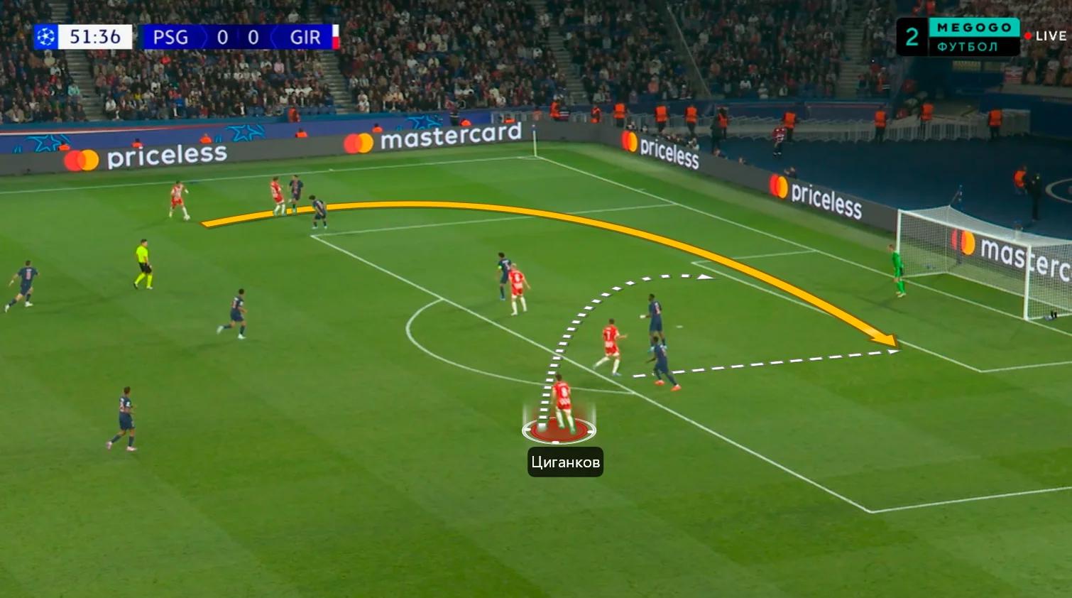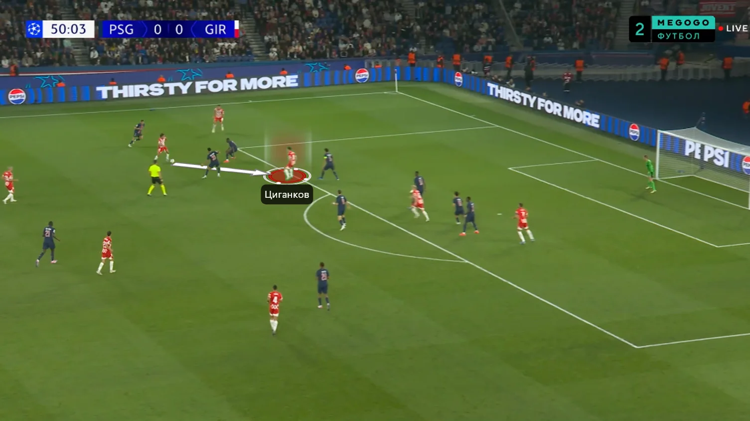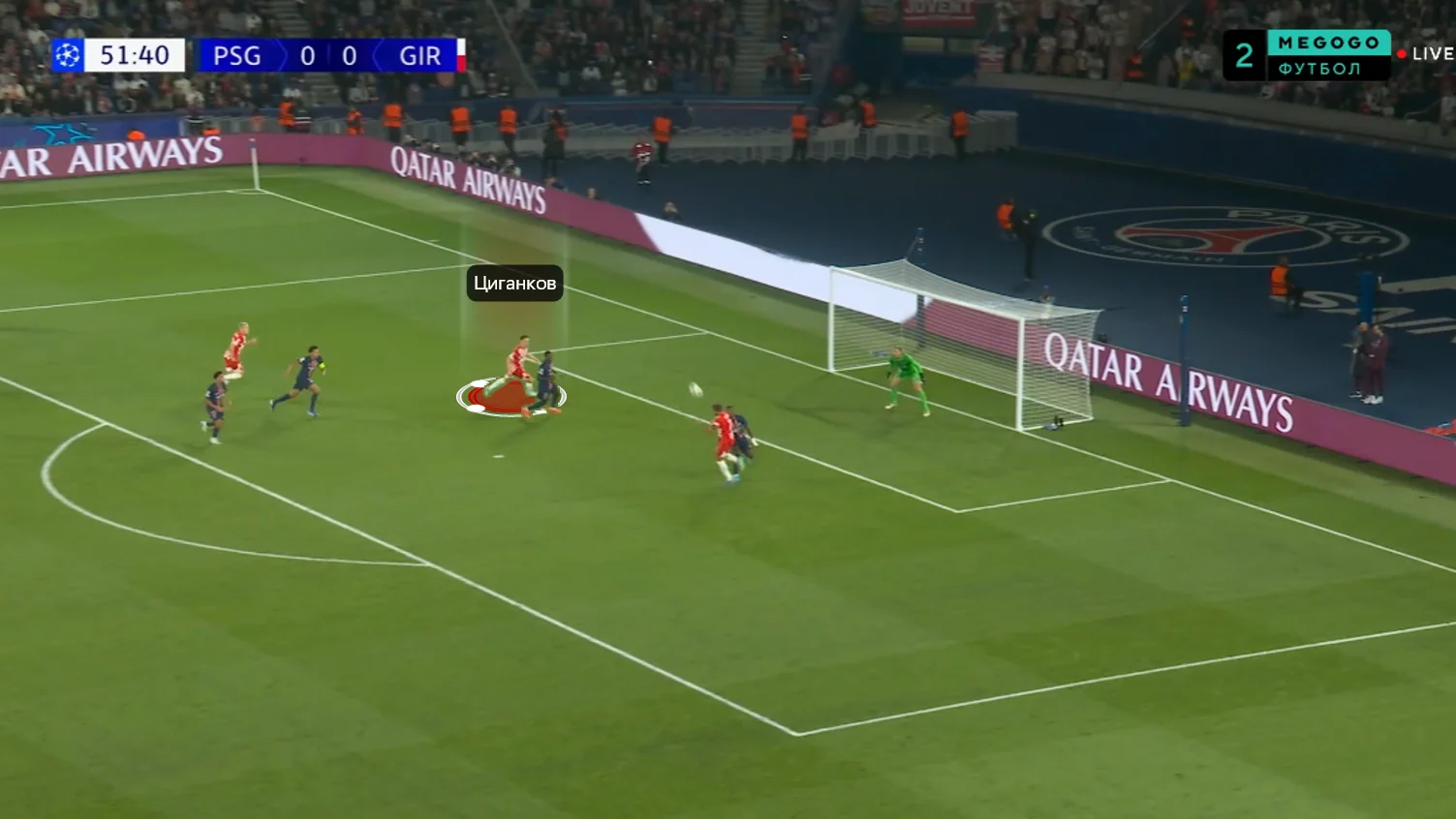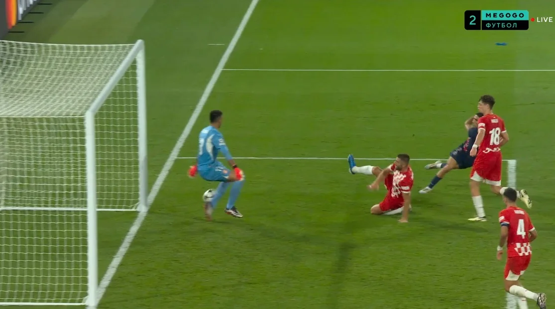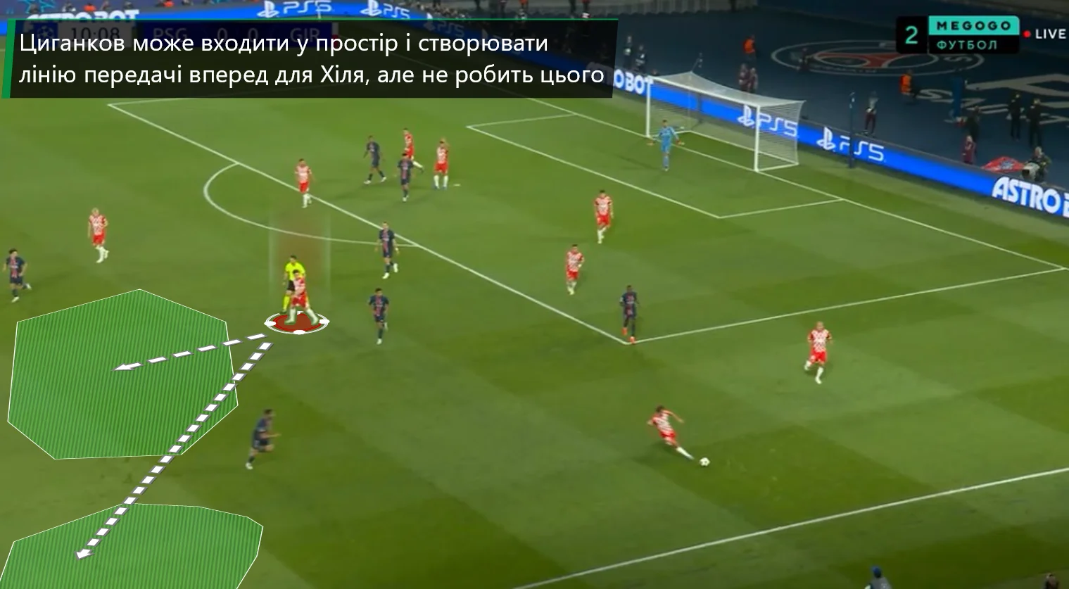 Момент, коли Циганков не дав вийти з оборони, втративши неперервність. Поки Хіль розвертався, Віктор мав бігти в простір і створювати лінію передач – але наш земляк увімкнувся занадто пізно. У підсумку ПСЖ відібрав м'яч і провів атаку з ударом Заїра-Емері.