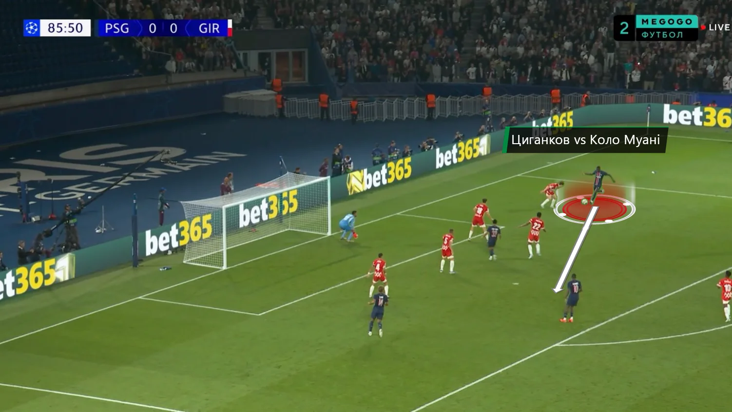 Зате через хвилину Віктор опинився 1-в-1 проти Коло Муані – і ось тут Віктор вже занадто довго пласувався, дозволивши виконати простріл. Хоча не факт, що рішення атакувати технічного Рандаля було б кращим. На щастя, Дембеле при замиканні з класної позиції пробив у небо.