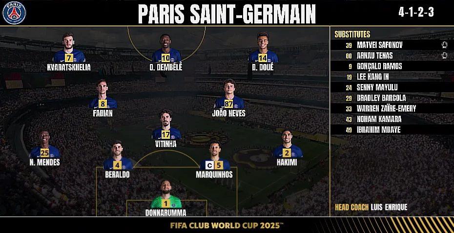 Парижани з перших же хвилин захопили контроль над грою, не відпускаючи його до самого фінального свистка. Команда Луїса Енріке працювала саме так, як і очікували. Позиційні ротації, блискавична робота в перехідних фазах, ефективний пресинг, ефективне просування під тиском – те, що спостерігали навесні, вболівальники побачили у півфіналі Клубного ЧС.