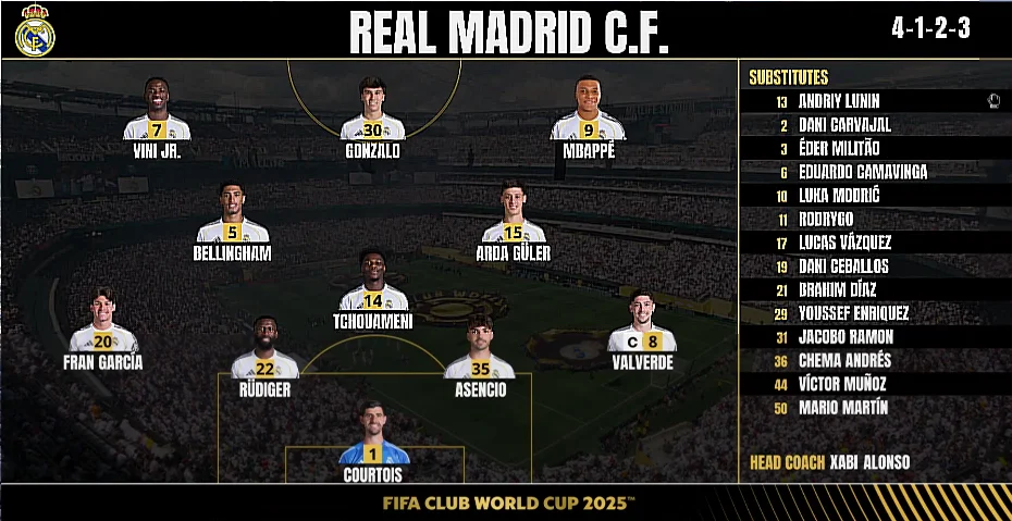 Однак у Реала проблеми були серйозніші. Через дискваліфікацію поєдинок пропускав центрбек Хьойсен. Замість нього довелося випускати Асенсіо – той привіз пенальті з Аль-Хілялем і взагалі багато помилявся на турнірі, тож заміна виглядала нерівноцінною. Особливо з урахуванням кондицій посттравматичного Рюдігера.