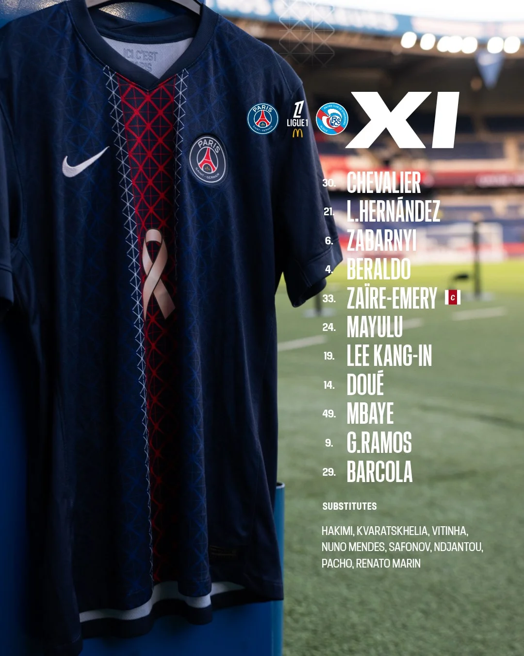 Стартовий склад ПСЖ: Шевальє, Ернандес, Бералдо, Забарний, Заїр-Емері, Дуе, Лі Кан Ін, Маюлу, Барколя, Рамуш, Мбає.
