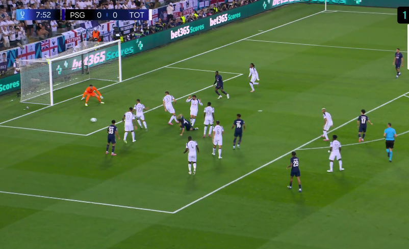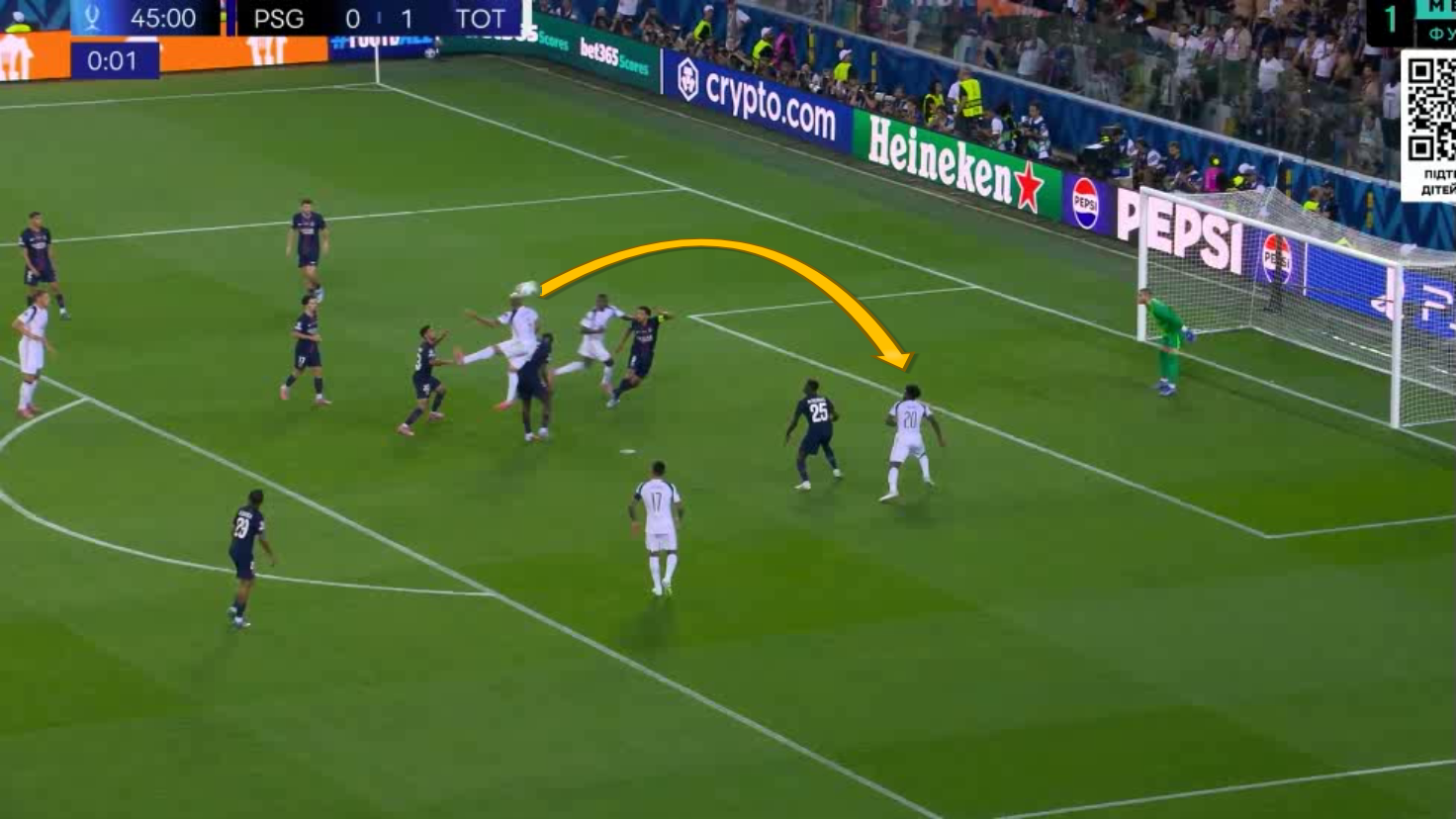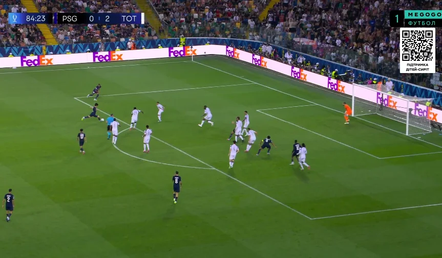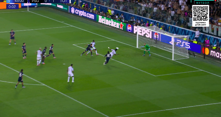 Наслідком такого футболу стала катастрофічна статистика першого тайму. 4:9 за ударами, 0:3 у площину, 0,23 очікуваних голи проти 1,22 у британців – і жодної гостроти біля воріт Вікаріо. Ну, майже. Тоттенхем переїхав ПСЖ фізично і тактично.