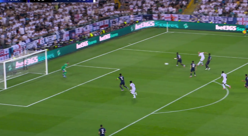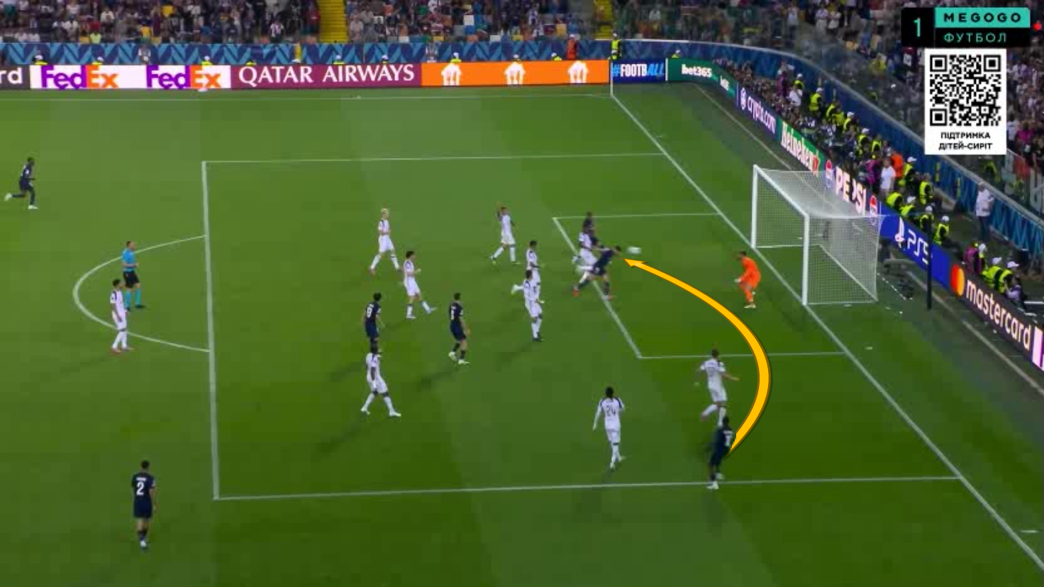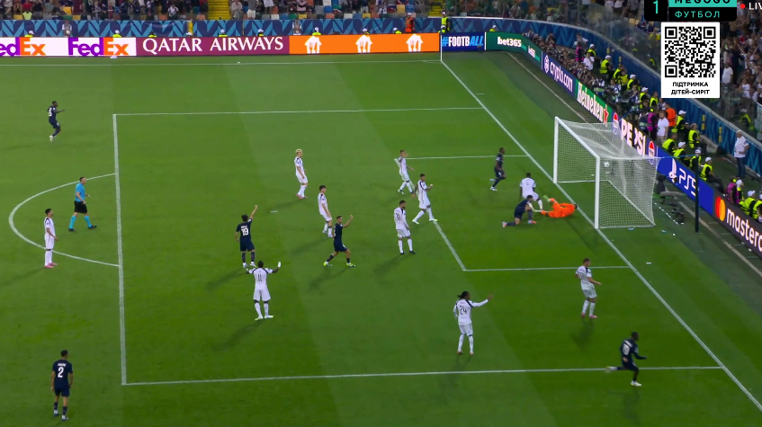 Великої кількості моментів французи не створили, але до гола справа йшла. Він стався на 66-й хвилині. Дуе прямо перед заміною змістився на лінію штрафного і пробив у дальній нижній дали – Вікаріо врятував, однак на добиванні опинився Фабіан Руїс. Його змогли заблокувати, але друге добивання (від Барколя) вже ніхто не накрив.