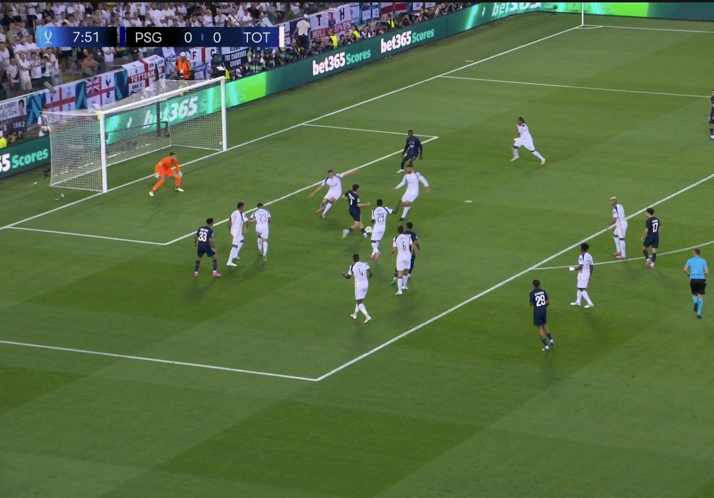 Ці "родзинки" підняли ПСЖ до небес, однак на стадіоні в Удіне жодна не працювала. Тоттенхем надійно захищався, інтенсивно грав без м'яча на чужій половині й постійно тікав у контратаки – через зони Вітіньї та Нуну (прямо як Челсі). Парижани ж навіть не змогли затиснути північних лондонців пресингом.