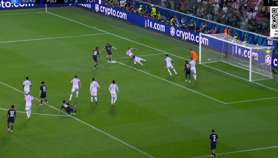 На 85-й хвилині ПСЖ розмочив рахунок. Героєм став Лі Кан Ін, який прийняв скидання від Вітіньї та вистрілив метрів з 22-х у дальній нижній кут. Шансів у Вікаріо відверто не було. Сам гол яскраво демонструє, які проблеми з входом у периметр відчували парижани.