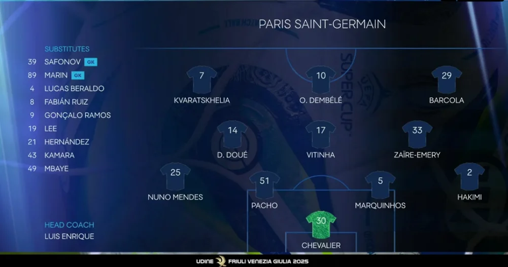 Забарний, на жаль, до заявки потрапити не стиг. Доннарумму теж прокинули. Замість нього у старті з'явився новачок Шевальє, чітко вказавши росіянину Сафонову на його статус у Парижі. На всіх інших позиціях обійшлося без несподіванок.