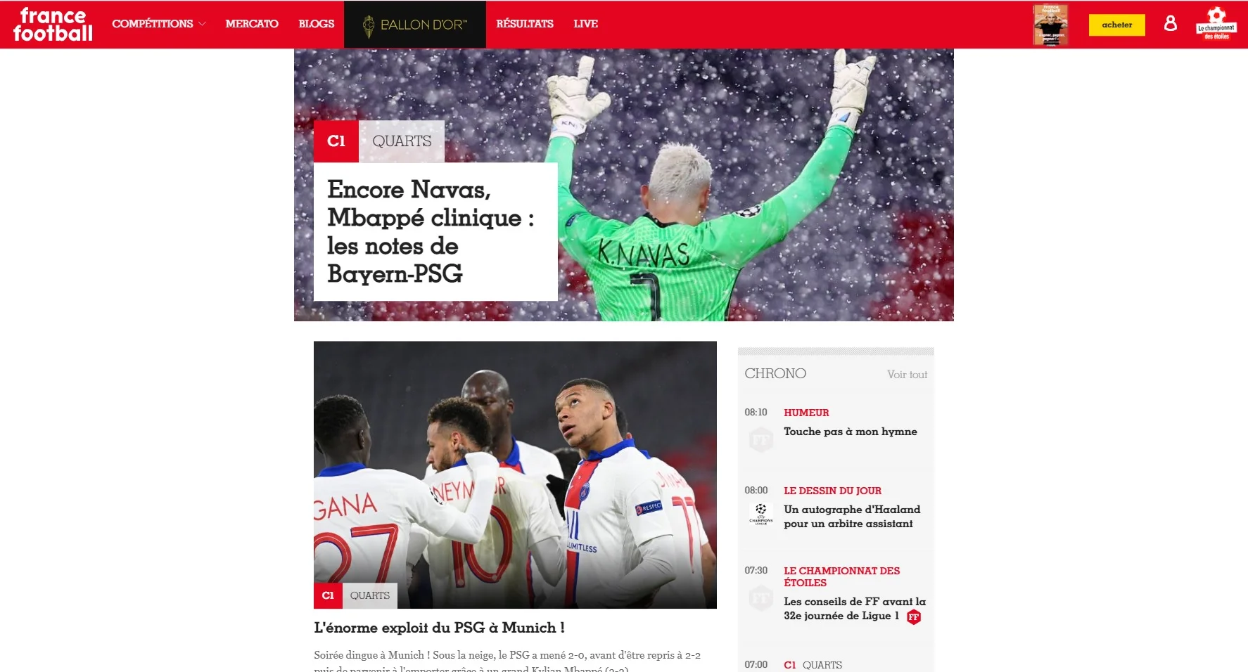 "Невловимий ПСЖ дивує мюнхенську Баварію, домінуючи у першому матчі чвертьфіналу ЛЧ. Оскільки спорту притаманний найвищий ступінь порівняння, термін "подвиг" заманливо описує цю звитягу над чинним чемпіоном. Якщо існує інструкція, щоб зрозуміти, як працює ПСЖ, то в цьому сезоні ніхто не зміг її дістати. Перемога, здобута 7 квітня на засніженому полі в Мюнхені, кидає виклик метеорологічній і статистичній ймовірності. В умовах, ближчих до біатлонної гонки-переслідування, ніж до чвертьфіналу футбольної Ліги чемпіонів, парижани стримали сильний удар (31 постріл по власних воротах) і шість разів відповіли клінічною ефективністю.