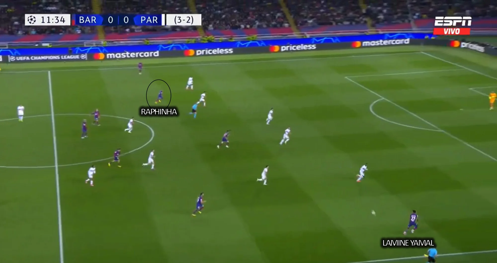 Хакімі встиг його накрити, однак Рафінья якимось дивом зміг пробити блок марокканця. Точне замикання у дотик вивело Барсу вперед – 1:0!