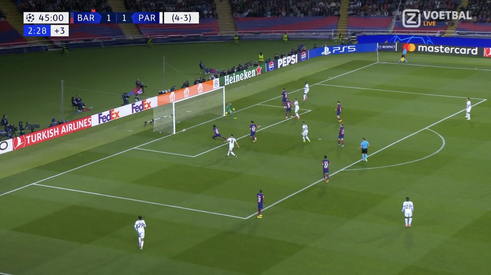 Парижани ж почали загострювати пізніше, але моменти були не менш небезпечними. Барколя викотив передачу в карний майданчик під замикання Мбаппе, а Кіліан у дотик бахнув в лівий нижній кут. Тер Штеген врятував "блаугранас"! Подальший кутовий завершився ударом головою з боку Кіліана, однак Кунде вибив м'яч із лінії воріт. .