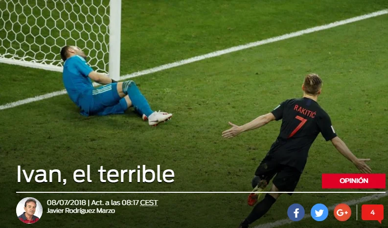 "Іван IV Васильович був одним із засновників Росії та першим, хто отримав титул царя. Але, на жаль для росіян, справжнім Іваном Грозним у футболі є хорват, його прізвище – Ракітіч, і він захищає кольори Барселони", – пише Sport.es.
