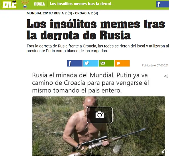 А ось аргентинське видання Ole зробило підбірку кумедних мемів з нагоди вильоту Росії, затроливши її президента. "Путін вже на шляху до Хорватїі, щоб помститися та захопити всю країну", – йдеться на одній із картинок, де глава Кремля зображений із гвинтівкою. Тепер, мабуть, боятись потрібно і самим аргентинцям...