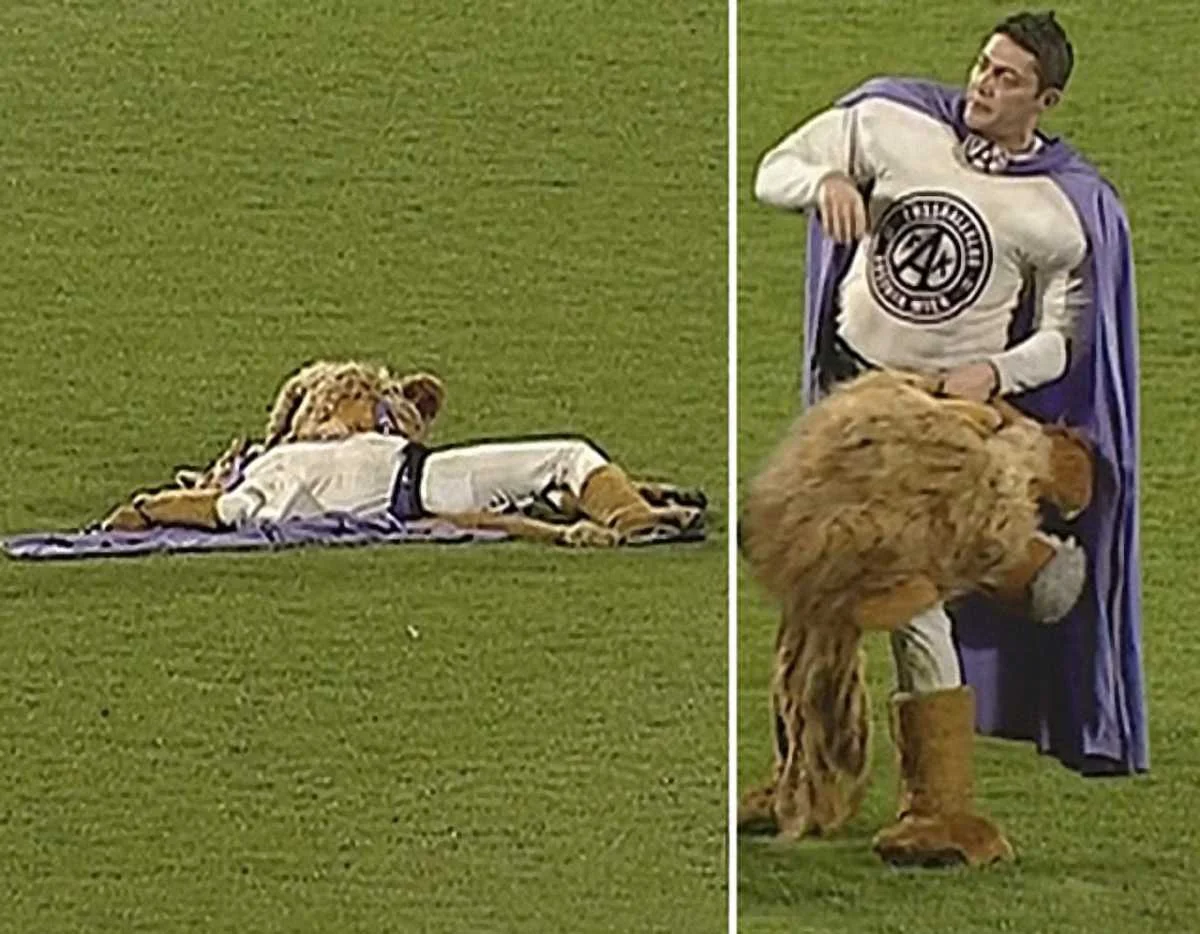 Клубний талісман віденської "Аустрії" - "Супер Лев", схоже, добряче хильнув перед матчем своєї улюбленої команди.