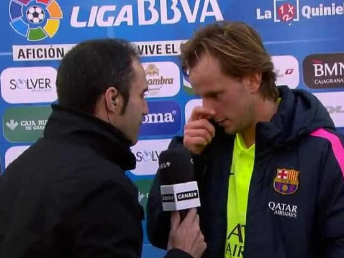Півзахисник "Барселони" Іван Ракітіч після свого гола у матчі Прімери з "Гранадою" побіг до лави запасних, аби обійняти воротаря команди Марка-Андре тер Штегена.