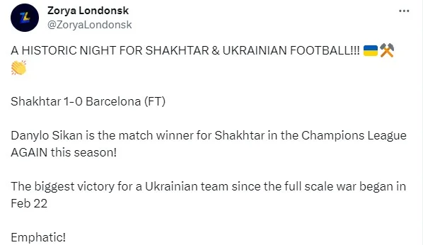 Ендрю Тодос (Zorya Londonsk) вважає, що це найгучніша перемога української команди після початку повномасштабного вторгнення русні. Погоджуєтесь?