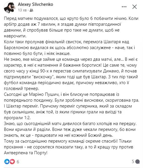 Вже у другому таймі каталонського матчу було зрозуміло, що з цією Барсою можна грати і здобувати очки. Тоді "гірники" ще не сповна повірили у власні сили, тож обмежилися лише голом престижу.
