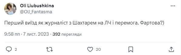 Журналістка Футбол 24 Ольга Любушкіна, яка вирушила з "гірниками" до Гамбурга, виявилась фартовою.