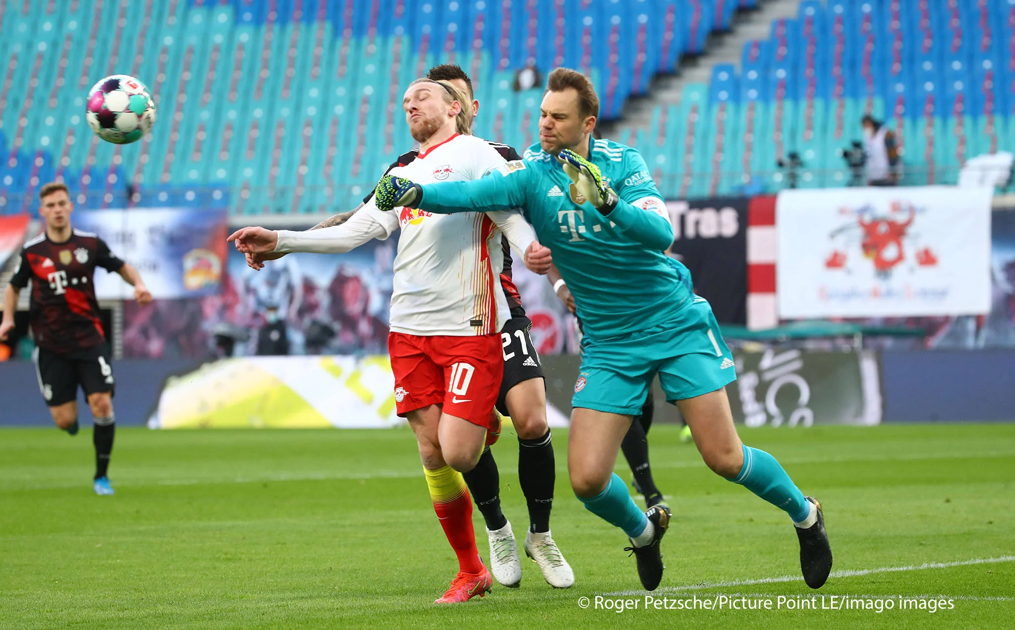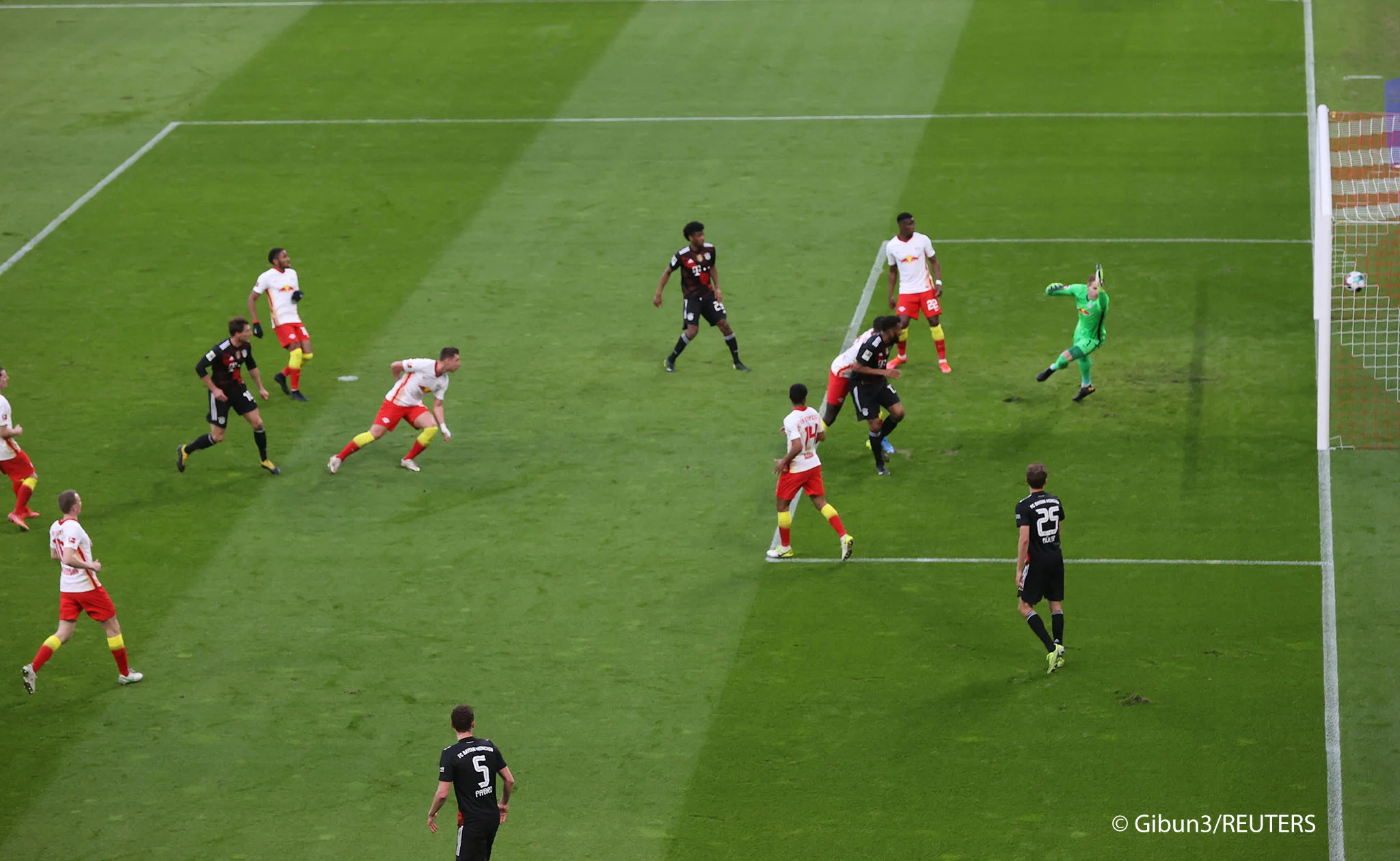 Ще за три хвилини Забітцер змістився з лівого флангу й пробив з дистанції. Ця спроба виявилась занадто простою для Нойєра, але на 59-й Марсель вистрілив з-за меж штрафного під поперечину – голкіперу мюнхенців довелося виконати карколомний стрибок, аби врятувати команду від голу! До 65-ї хвилини РБ Лейпциг вів за ударами з рахунком 8:0, а Баварія взагалі нічим не відповідала.
