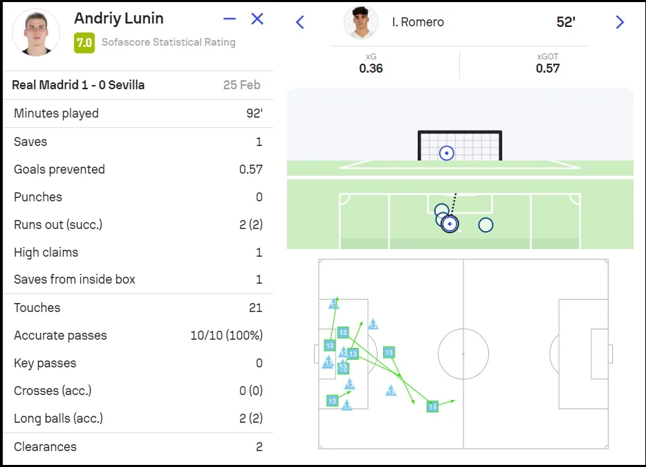 По перерві раз довелося вступити у гру. Якщо Ен-Несірі не влучив у кут воріт, то Ромеро відгукнувся на пас партнера точним ударом. Лунін грамотно вибрав позицію та коліном зупинив м'яч.