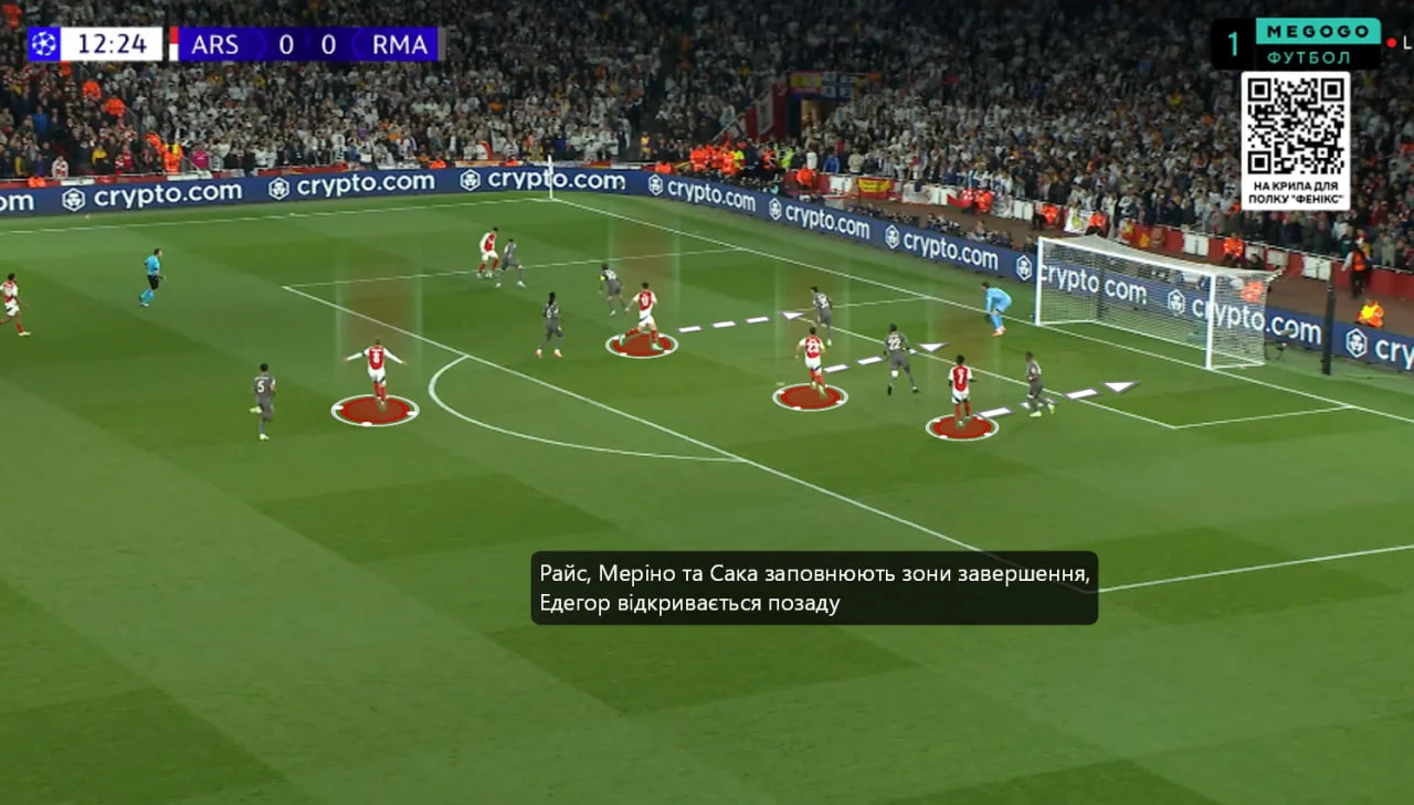 Крім того, шикарно зіграла ідея з трьома десятками у старті. Меріно, Едегор і Райс завдяки своїй мобільності встигали як навантажувати зони завершення, так і допомагати під тиском в опорній зоні.