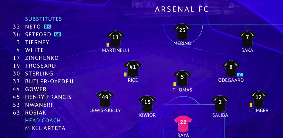 Мікель Артета не став змінювати переможний склад із матчу на Емірейтс, хоча протягом тижня виникали питання щодо готовності Парті.