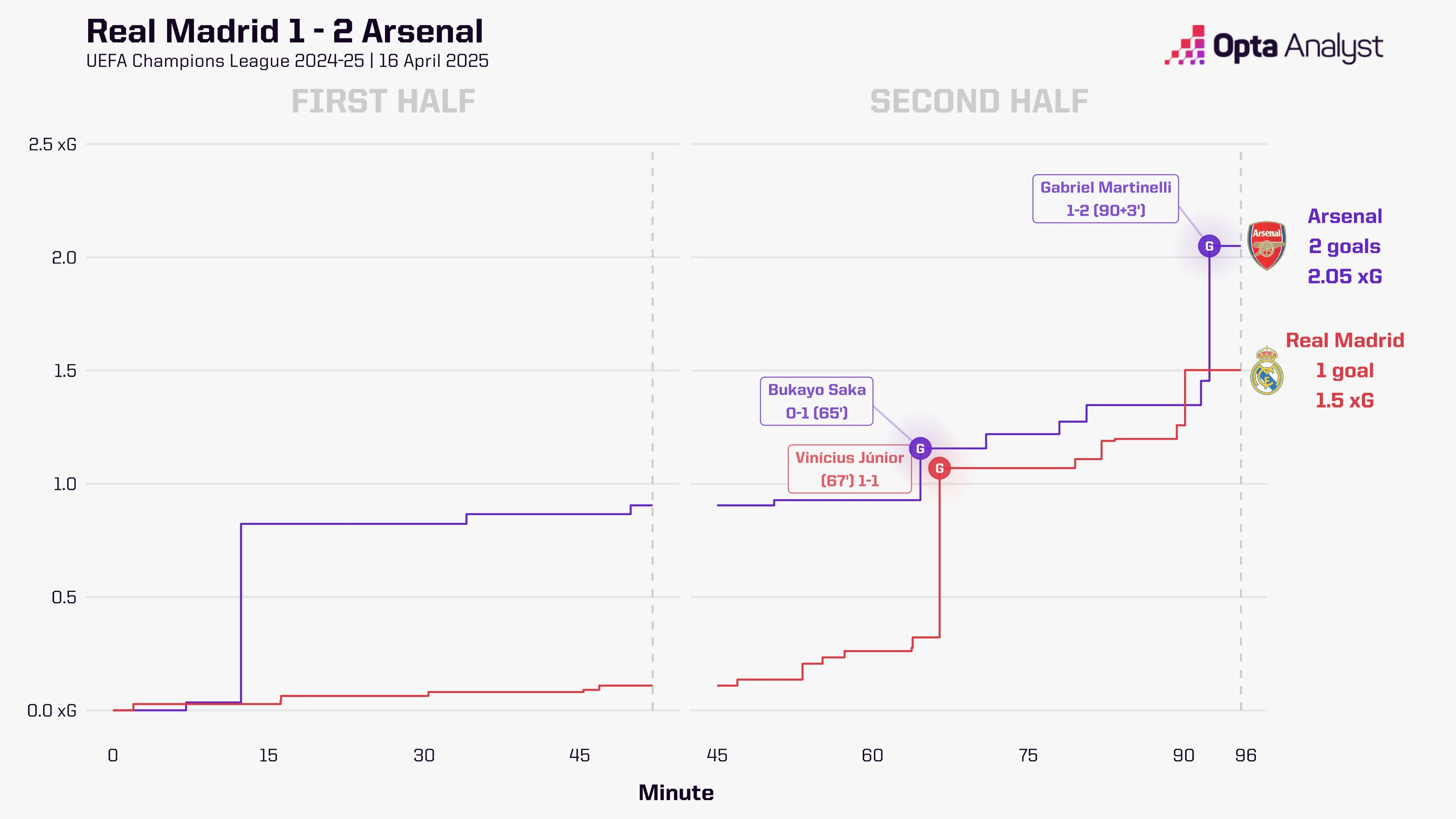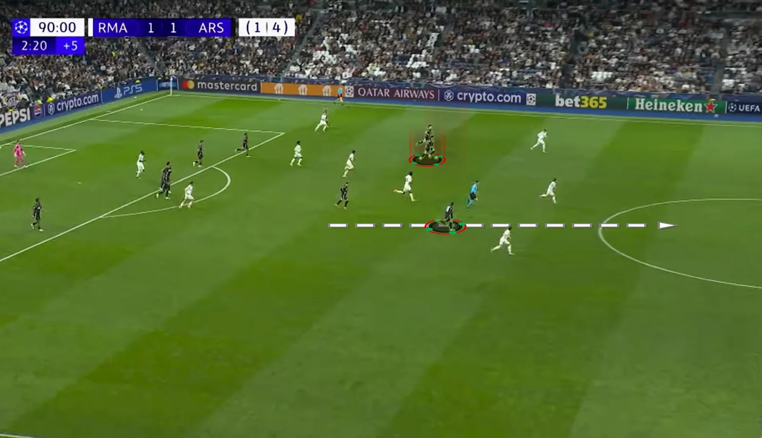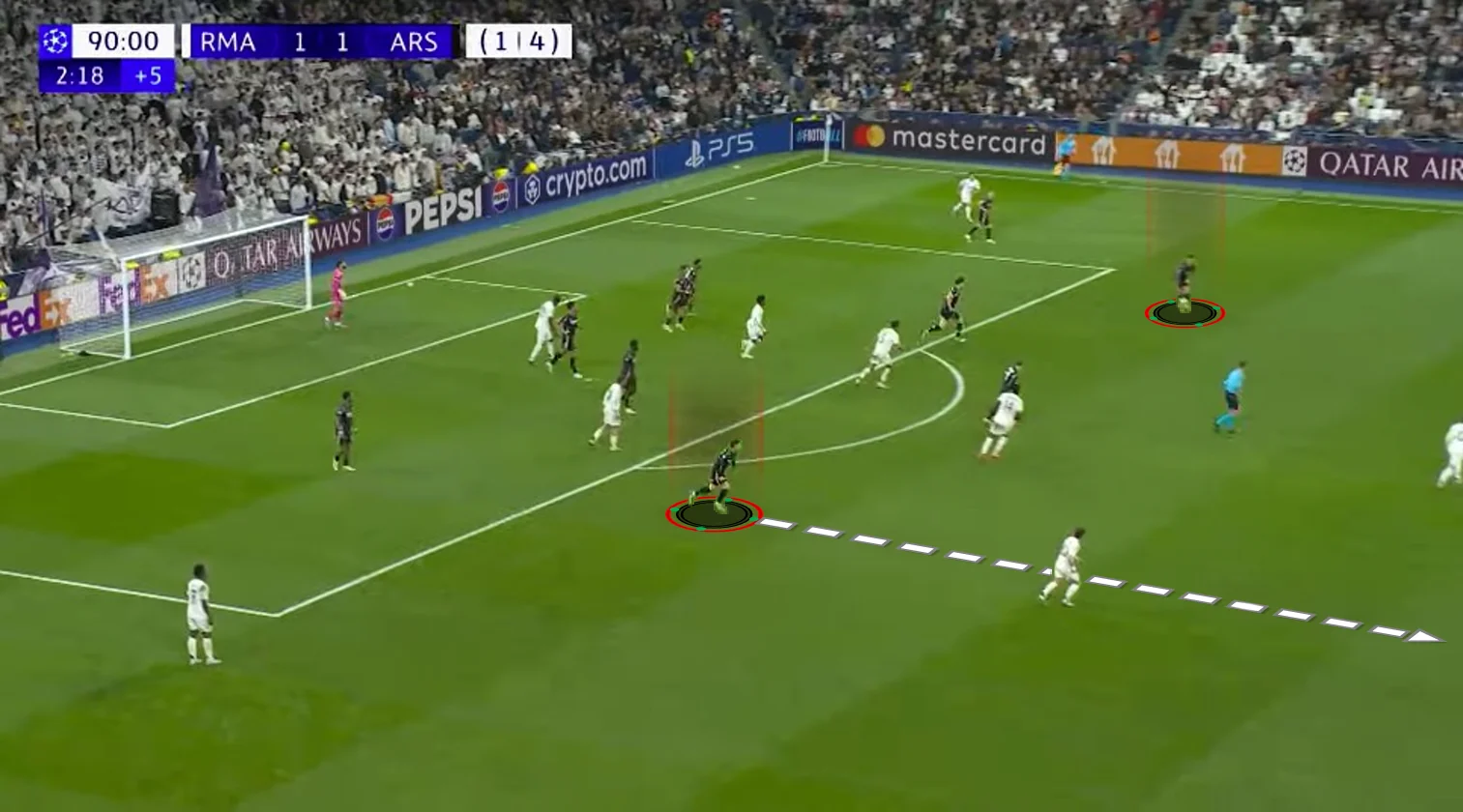 А от Мартінеллі на 3-й компенсованій не схибив, реалізувавши вихід сам на сам – 1:2. Характерно, що вирішальна контратака стартувала після 35-го неточного кросу господарів. Габріель при цьому подолав дистанцію від свого до чужого штрафного приблизно за 10 секунд, перегнавши чотирьох футболістів Реала (при колосальній форі останніх).