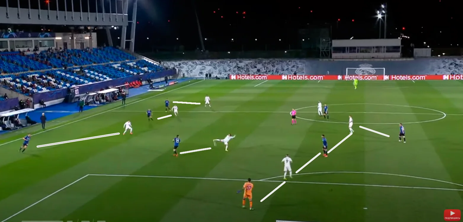 Всі ми знали дві константи. Перша – Аталанта грає завдяки агресивному персональному пресингу та перевантаженням зон на флангах, де традиційно створюються ромби під обіграші. Друга – ця система вкрай вразлива при наявності звільненого від жорсткої позиції гравця суперника, у якого хороший дриблінг та пас. У випадку з минулорічним чвертьфіналом ЛЧ таким виконавцем став Неймар, а у Бергамо такого футболіста зіграв Іско. Зінедін Зідан пішов далі й відмовився від Іско, аби зробити фальшивими практично всіх своїх підопічних.