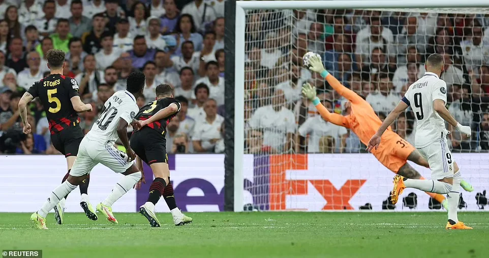 На 78-й хвилині тиск Реала мав вилитись у гол Бензема. Карім пробивав після переведення Крооса на правий кут воротарського, але Едерсон врятував. Крім того, Чуамені шикарно бив з дистанції під поперечку (Едерсон парирував), а один із пострілів зі стандарту пройшов над поперечкою.