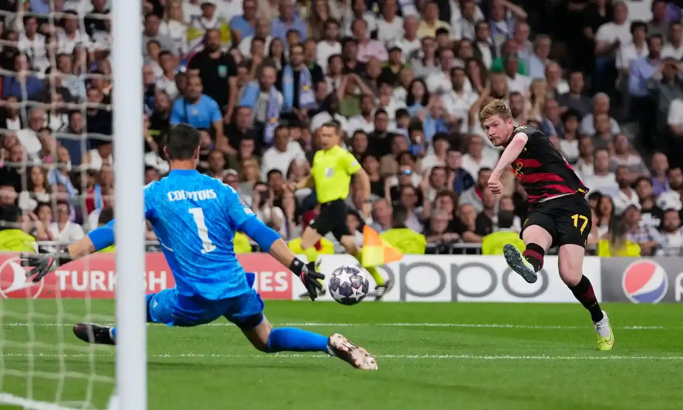 Втім, суттєво розкачати оборону Реала не виходило. Половина пострілів пройшла з-за меж штрафного, причому вони були найбільш небезпечними – КДБ і Родрі били точно під стійку, змусивши Куртуа виконувати сейви.