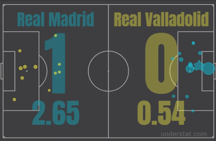 Зіданівський Реал 2.0 не зраджує ідеалам. Мадридці провели черговий матч проти середняка, в якому не справили враження гранда – вони грали на рівних, дозволяли створювати небезпечні моменти біля власних воріт, а біля чужих загострювали несистемно, час від часу. За ударами в матчі проти Вальядоліда було 15:11, за влучаннями у площину – 5:5, за зонами активності також повна рівність – футболісти провели по 30% ігрового часу на третині поля суперника. Показники інтенсивності пресингу у "вершкових" посередні – всього 11,21 PPDA. Зрештою, Реал забив випадковий гол, який став наслідком двох рикошетів – без них Вінісіус перебував би у глухому офсайді.